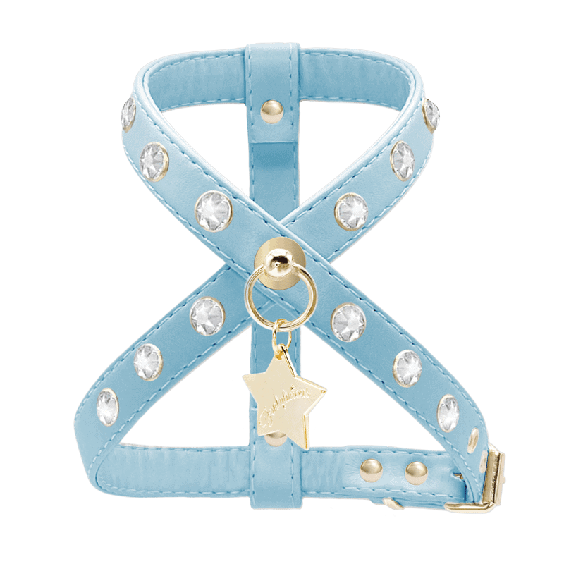 El arnés crystals está realizado en eco-piel tipo napa muy suave y resistente , decorado con brillantes remachados