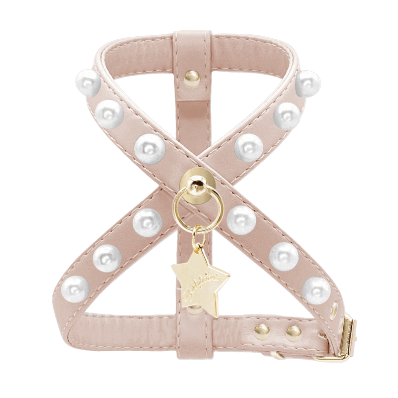 El arnés pearls está realizado en eco-piel tipo napa muy suave y resistente , decorado con perlas remachadas