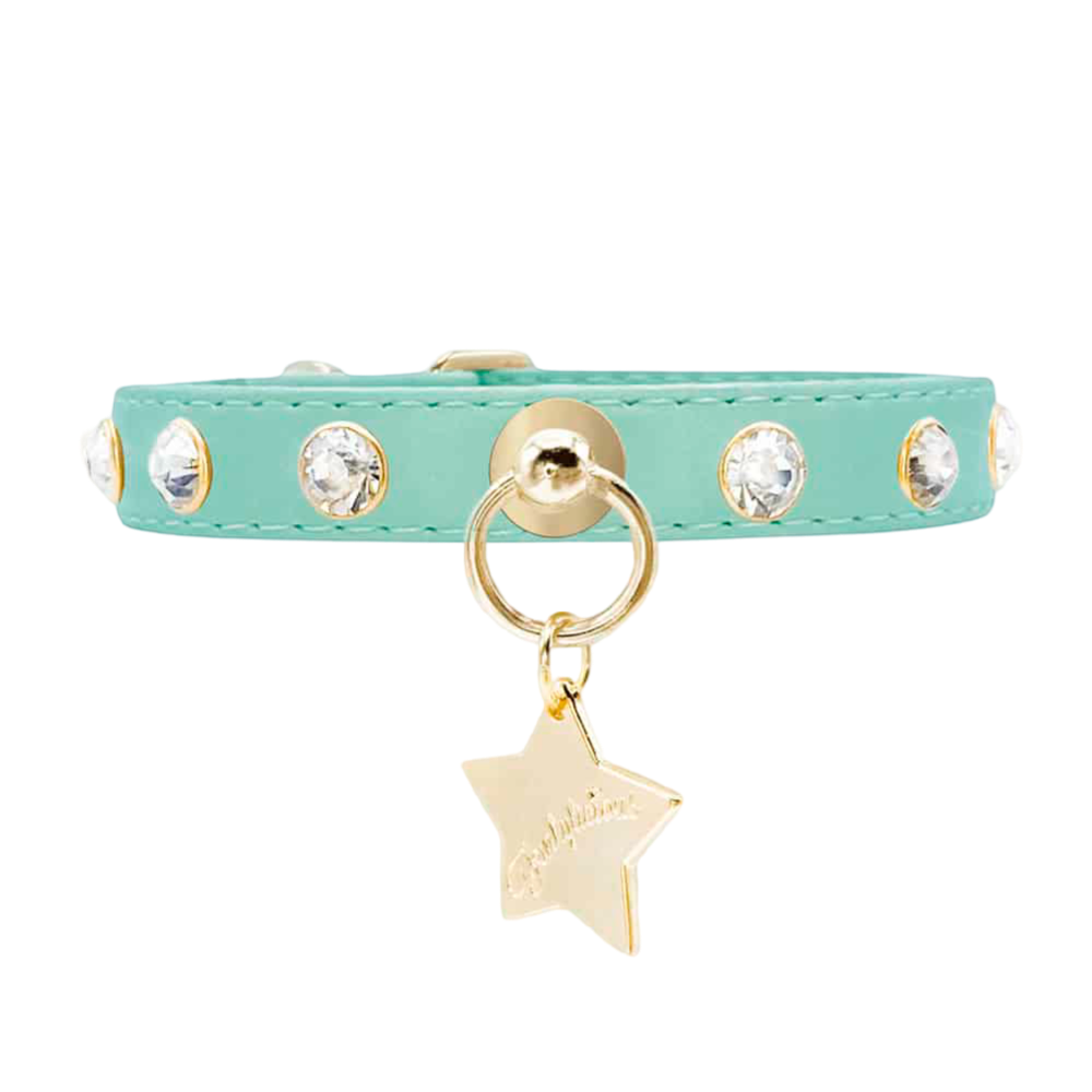 El collar Crystals está realizado en eco-piel tipo napa muy suave y resistente y decorado con cristales super brillantes.