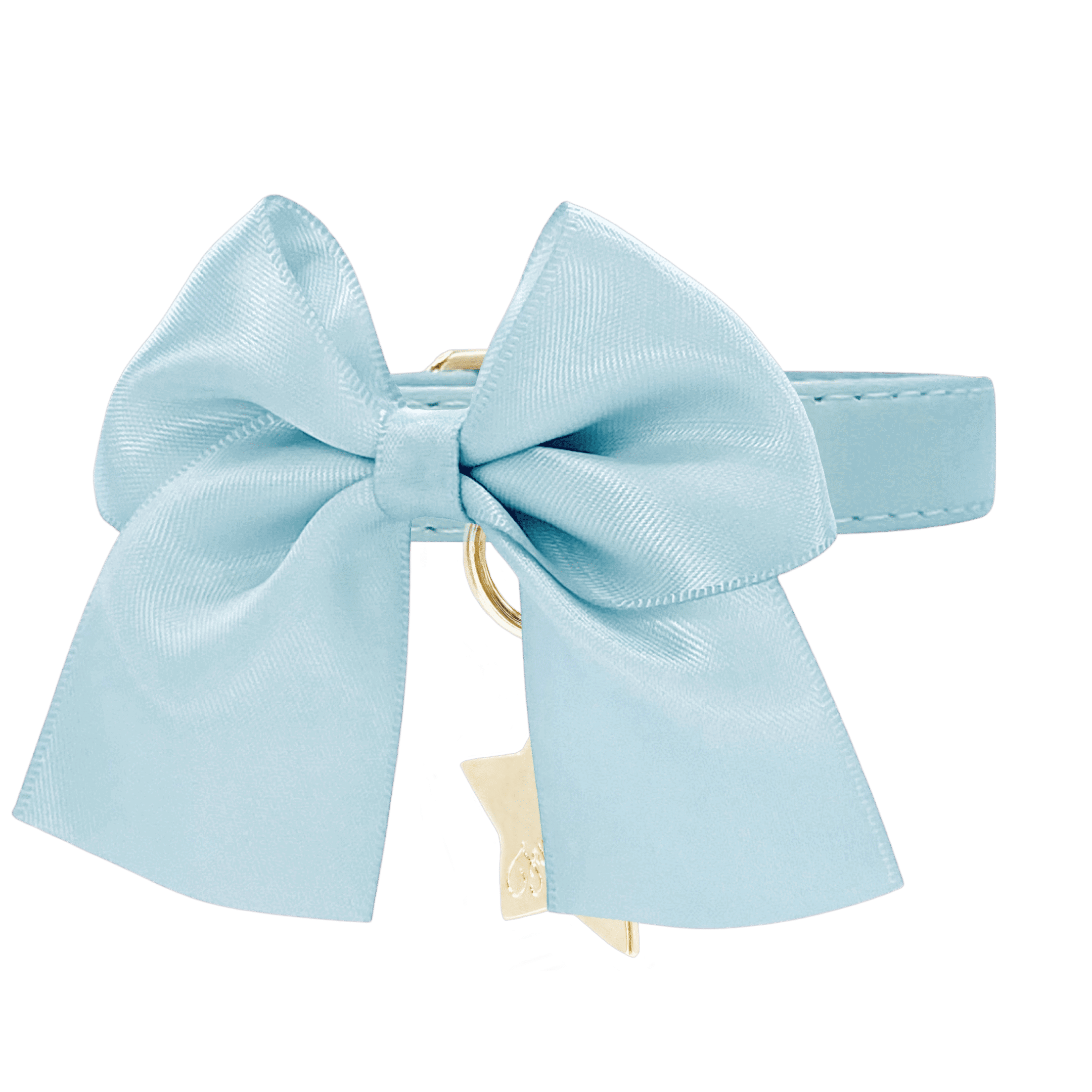 El collar Romantic está realizado en eco-piel tipo napa muy suave y resistente y decorado con un lacito de satén de 85mm de ancho.